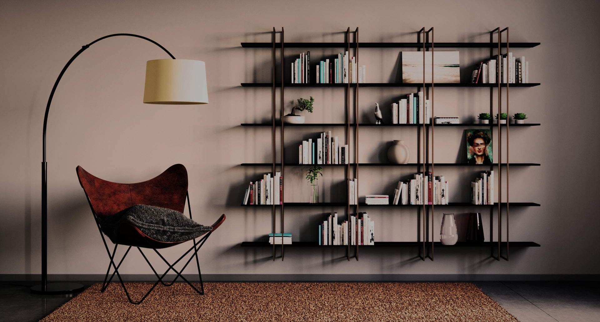 Discover our wall-mounted bookcases, floor-to-ceiling modular structures designed to furnish homes, offices and retails spaces. Dividing systems, tailor-made solutions, modern bookcases distingueshed by a contemporary and fresh design.